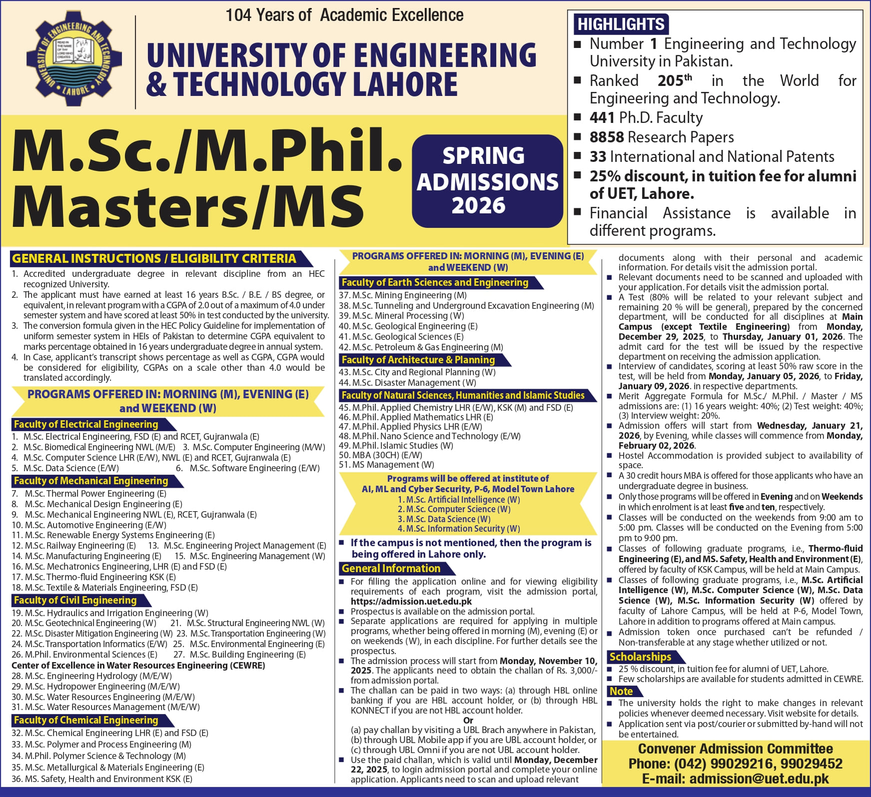 Special Offer for Fee Waivers CEWRE Student Facilitations T&C for Fee Waivers CEWRE Salient Features UET Advertisement for M.Sc./M.Phil./MS UET Advertisement for Ph.D. Admissions APPLY ADMISSION Apply Online for M.Sc. Apply Online for Ph.D.