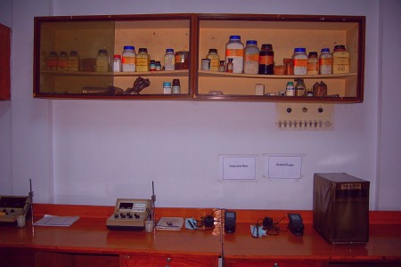 This laboratory is well equipped with instruments used for physical and chemical analyses of soils, plant and waters including pH meters, electrical conductivity meters, textural analyses apparatus, UV spectro- photometer, flame photometer, atomic absorption spectrophotometer, temperature controlled water bath, centrifuge machine, Muffle furnace, soil moisture determination apparatus, various soil sampling kits and tools. The facilities for soil and water quality analysis for agriculture, soil reclamation macro and micro- nutrient status of soil, plant and water are also available.